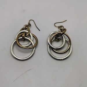 These stunning earrings feature a blend of gold and silver hoops, perfect for adding a touch of elegance to any outfit. Ideal for both casual and formal occasions.