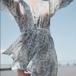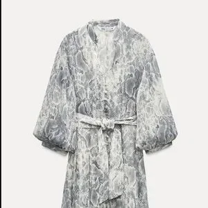 Experience luxury with this elegant gray snake print robe. Perfect for lounging in style.