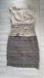 This elegant women's dress features a sophisticated blend of gray and cream colors. Perfect for any occasion, it offers a stylish and timeless look.