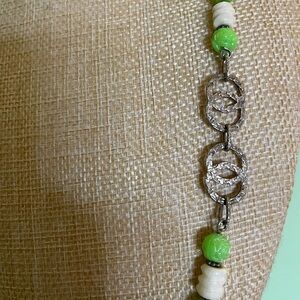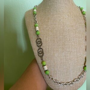 This elegant necklace features vibrant green beads paired with classic silver accents, perfect for adding a touch of sophistication to any outfit.