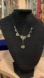 This elegant necklace features intricate heart designs adorned with sparkling green accents. With suede chain very soft in excellent to new condition beautiful little piece of jewelry.