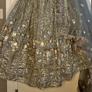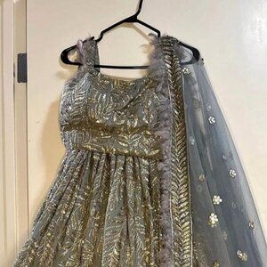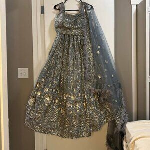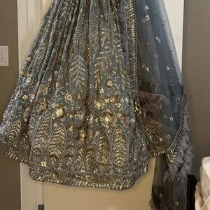 Elegant Grey and Gold Embroidered Lengha – Like New!