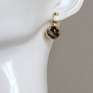 Elegant Hand Crafted Boho Black Gold Gemstone Marble Circle Drop Dangle Earrings