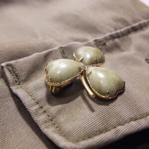Elegant Jade Shamrock Brooch Gold Tone Setting