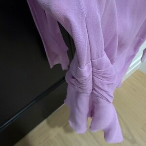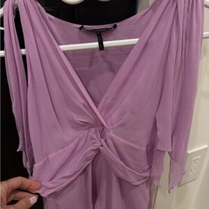 This elegant lavender top features a stylish wrap design, perfect for any occasion. Its soft fabric and flattering fit make it a must-have addition to your wardrobe.