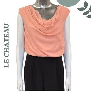 Elegant Le Château Two-Tone Jumpsuit with Cowl Neck Black Peach Size Small