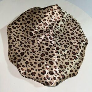 Add a touch of sophistication to your hair care routine with this elegant leopard print satin bonnet. Perfect for maintaining your hairstyle with style.