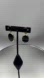A black glass oval Cabochon is encased in a gold tone metal with a prong set marquis shaped black glass cabochon attached to the clip for the dangle effect. They measure about 1.5 inches in length and are about 5/8 inch wide.