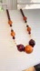 Add a touch of elegance to your outfit with this stunning light and dark wooden beaded and seashell necklace. Nice to complement many outfit for any occasion. The lights captures the wood hues of orange and purple.