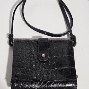 Elegant Liz Claiborne New York Black Leather Crossbody Bag - Versatile Compact