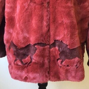 Experience warmth and style with this elegant maroon teddy jacket, perfect for any occasion.