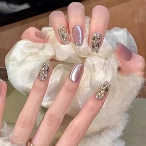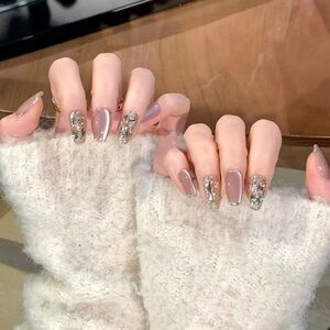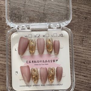 Enhance your style with this elegant mauve and gold nail polish set. Perfect for any occasion, these colors add a touch of sophistication to your look.