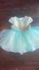 Fantastic evening dress for a little princess 2T, 92 height. The dress comes in shimmery mint-gold colors. Two-tone lamé top lined with cotton for softness and comfort with beautiful pearls. Bottom is mint and gold shiny tulle, lined with satin and cotton. Comes with a luxury two tone train with embellishments. Train can be easily attached and removed. Perfect for special occasions, photoshoot and just dress-up fun. Worn just once for the occasion, in perfect condition.