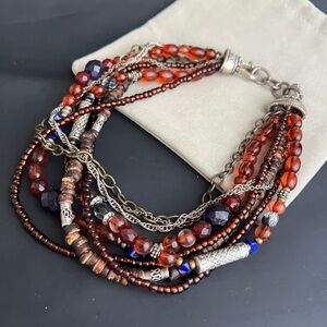 Boho Silver Beads and Chains Necklace Vintage Necklace Chico's Multicolour Gift for her