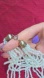 This long multi-strand (six strands) necklace features white beads, some with a tinge of green/blue, great statement piece.