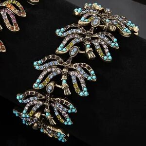 This stunning statement necklace features a blend of turquoise, yellow, and silver tones, perfect for adding a pop of color to any outfit. Its intricate design makes it a standout piece for any jewelry collection.