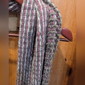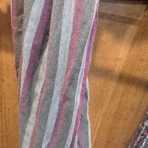 Add a touch of elegance to your outfit with this multicolor striped scarf. Featuring a blend of pink, gray, and cream, it's a versatile accessory for any wardrobe.