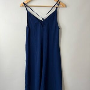 Stylish navy blue slip dress with delicate straps. Perfect for any occasion.