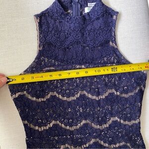 This elegant navy lace dress is perfect for any occasion. Its intricate design and flattering fit make it a must-have in your wardrobe.
