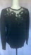 Elegant New Year’s Eve, Event Sweater from Beta’s Choice. Statement top with a feminine sheer neckline, intricate bead and sequin embroidery. Perfect for adding a touch of sophistication to your wardrobe. Black. Size Medium.