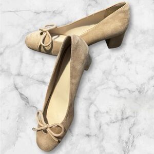 Step out in style with these elegant nude micro suede fabric pumps. Perfect for any occasion, these shoes offer both comfort and sophistication. Heel height 2”