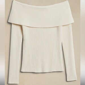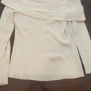 This elegant off-shoulder sweater in cream offers a sophisticated look. Perfect for any occasion, it combines style and comfort effortlessly.