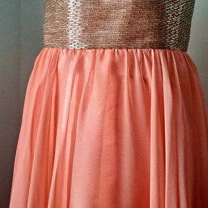 Pre-loved, worn one time, a couple of beads missing at waist (very easy fix), see pic, some of dress has some floor dusting not noticeable as it's at the bottom ground touching