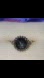 This elegant ring features a striking black stone set in a silver band. Perfect for adding a touch of sophistication to any outfit. nice silver beaded edge surrounds the blue crystal and a very smooth band .