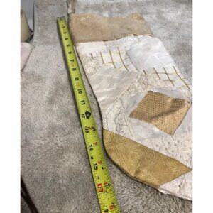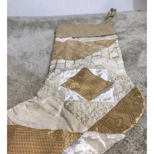 Elegant Patchwork Christmas Stocking Beige & Gold 19"