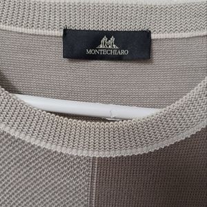 Stay cozy and stylish with this elegant patchwork sweater. Featuring a blend of cream and brown tones, it's perfect for any occasion.