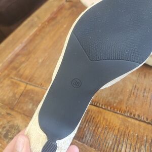 Step into elegance with these stunning pearl-embellished mules. Perfect for any occasion, these cream-colored shoes add a touch of sophistication to your outfit. Never worn.