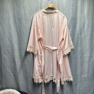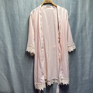Indulge in comfort with this elegant pink robe featuring delicate lace trim. Perfect for a relaxing evening.