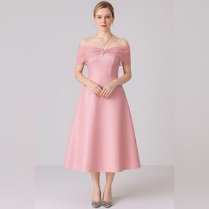 Step out in style with this elegant pink off-shoulder dress. Perfect for any occasion, this dress offers a flattering fit and a chic design.