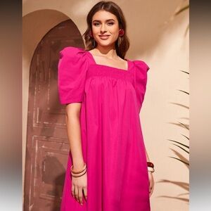 Step out in style with this elegant pink puff sleeve dress. Perfect for any occasion, this dress combines comfort and fashion effortlessly.