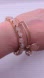 This elegant bracelet set features a stunning combination of blush pink acrylic and crystal rhinestones in rosegold tones settings, perfect for adding a touch of sophistication to any outfit. The delicate design and shimmering accents make it a must-have accessory. The acrylic stone eternity style bracelet is stretch and the bangle charm bracelet is adjustable.