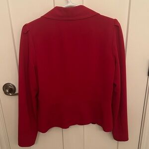 Add a touch of elegance to your wardrobe with this stunning red Femme blazer. Perfect for both professional and casual settings & for Christmas/ the holidays! 3 buttons, 2 faux front pockets, puff sleeves. Very classy on.