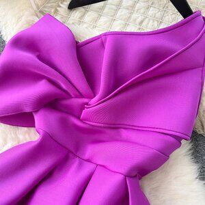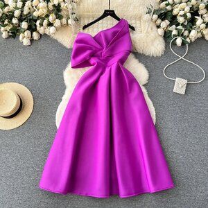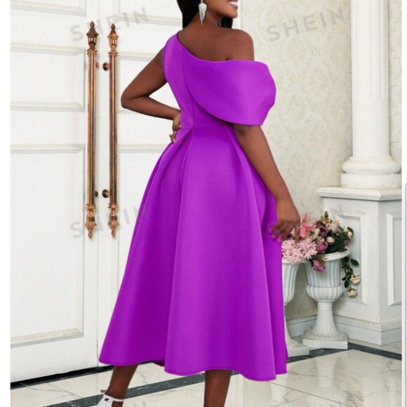 Elegant Purple Satin One-Shoulder Dress with Bow Detail Back Zipper Plus Size L, XL