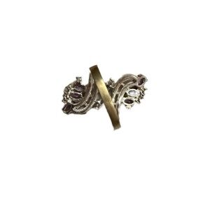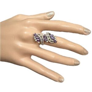 This stunning women's ring features elegant purple stones set in a sleek silver band. Perfect for adding a touch of sophistication to any outfit. Costume jewelry fashion ring. Worn on the band and still a beautiful ring.