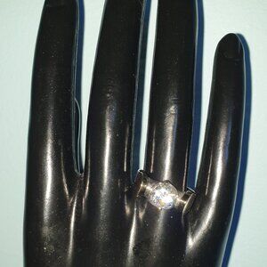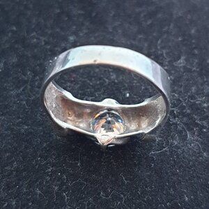 This stunning vintage sterling silver ring features a dazzling white zircon centerpiece, capturing the brilliance of a diamond at a fraction of the cost. The unique sculpted silver band enhances the stone’s radiance, creating a bold yet sophisticated statement piece perfect for any occasion.