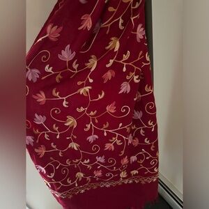 Add a touch of elegance to your outfit with this beautiful red floral scarf. Perfect for any occasion.
