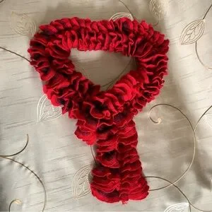 Add a pop of color to your outfit with this elegant red ruffled scarf. Perfect for any occasion.