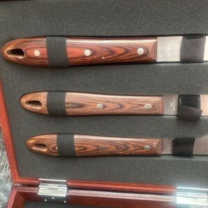 Elegant Red Wooden Case with Stainless Steel Barbecue Tools