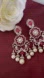 These stunning chandelier earrings feature a captivating red and silver design, perfect for adding a touch of elegance to any outfit. The intricate detailing and shimmering accents make them a must-have accessory.