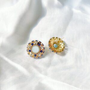 Elegant Round Stud Earrings with Light Blue Center Stone Classic Glam studs