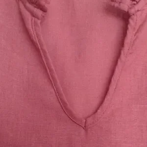 Features arm hole and v-neck ruffles.