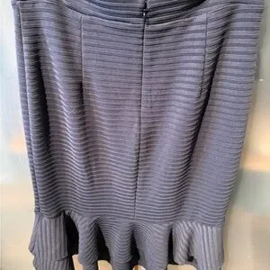 Chic navy pencil skirt with a ruffle hem. Perfect for a polished look.