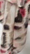 Long printed scarf, mostly raw edging with delicate stitch edge.