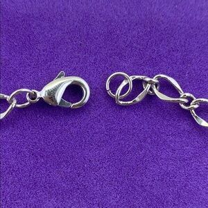 This elegant silver bracelet features a delicate fairy charm, perfect for adding a touch of whimsy to any outfit. The intricate design and shiny finish make it a standout piece in any jewelry collection. Pink detailing.