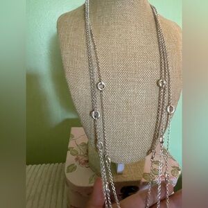 This elegant silver necklace features intricate circular accents, perfect for adding a touch of sophistication to any outfit.