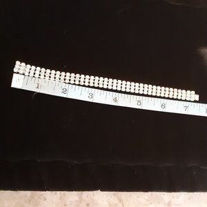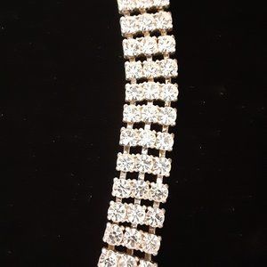 This stunning silver jewelry set features a beautifully crafted necklace and matching bracelet. Perfect for adding a touch of elegance to any outfit.